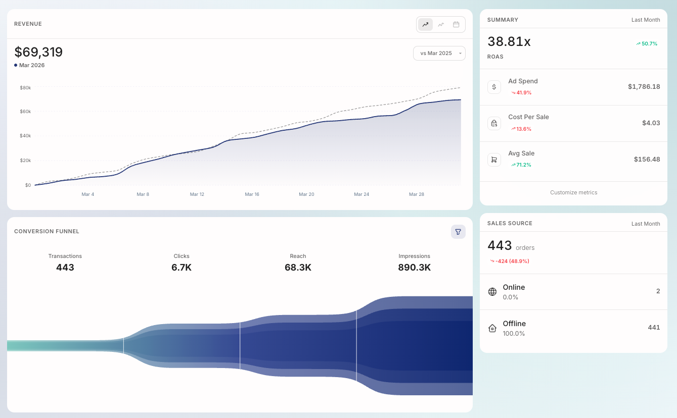 This is the question that separates retailers who are using data from retailers who are guessing. Meta will happily tell you your ad got 40,000 impressions and 1,200 clicks. Klaviyo will happily tell you your email had a 28% open rate and a 4% click-through rate. Great. Now tell me: how much money did it actually make you at the register?