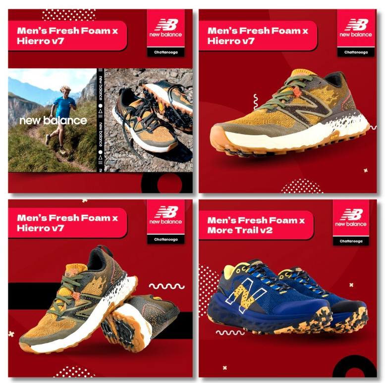 New Balance Chattanooga Design Work Aug 26 Written By Kody Fitzjerrells Look at these new designs for our client, New Balance Chattanooga!🔥 Kody Fitzjerrells