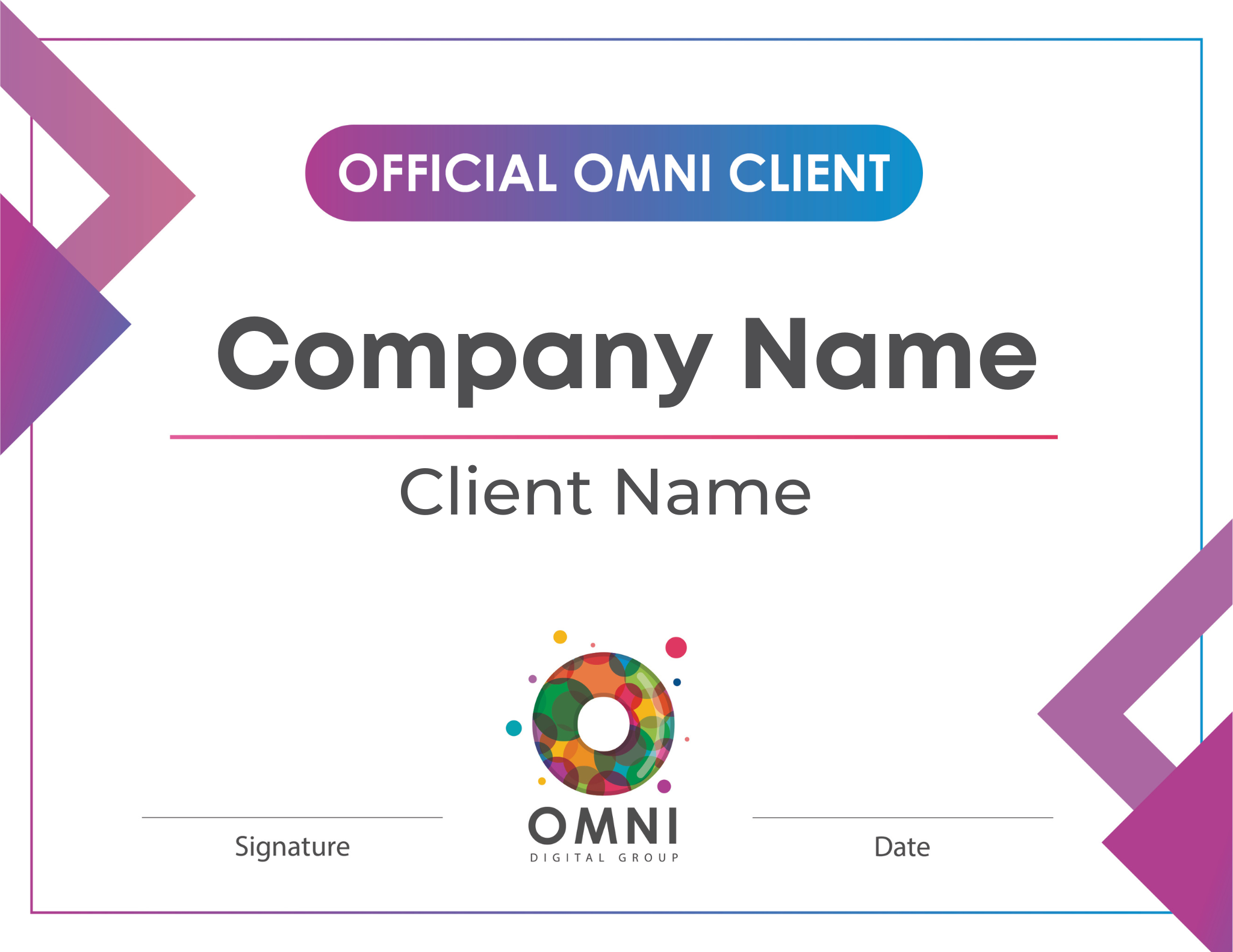 Check out our NEW Omni Client Certificate! We are sending these certificates to new clients, after we onboard them, as a way to welcome them to the team. Tis provides our clients with something tangible and memorable to have, and of course, a way to celebrate them joining out Omni team!