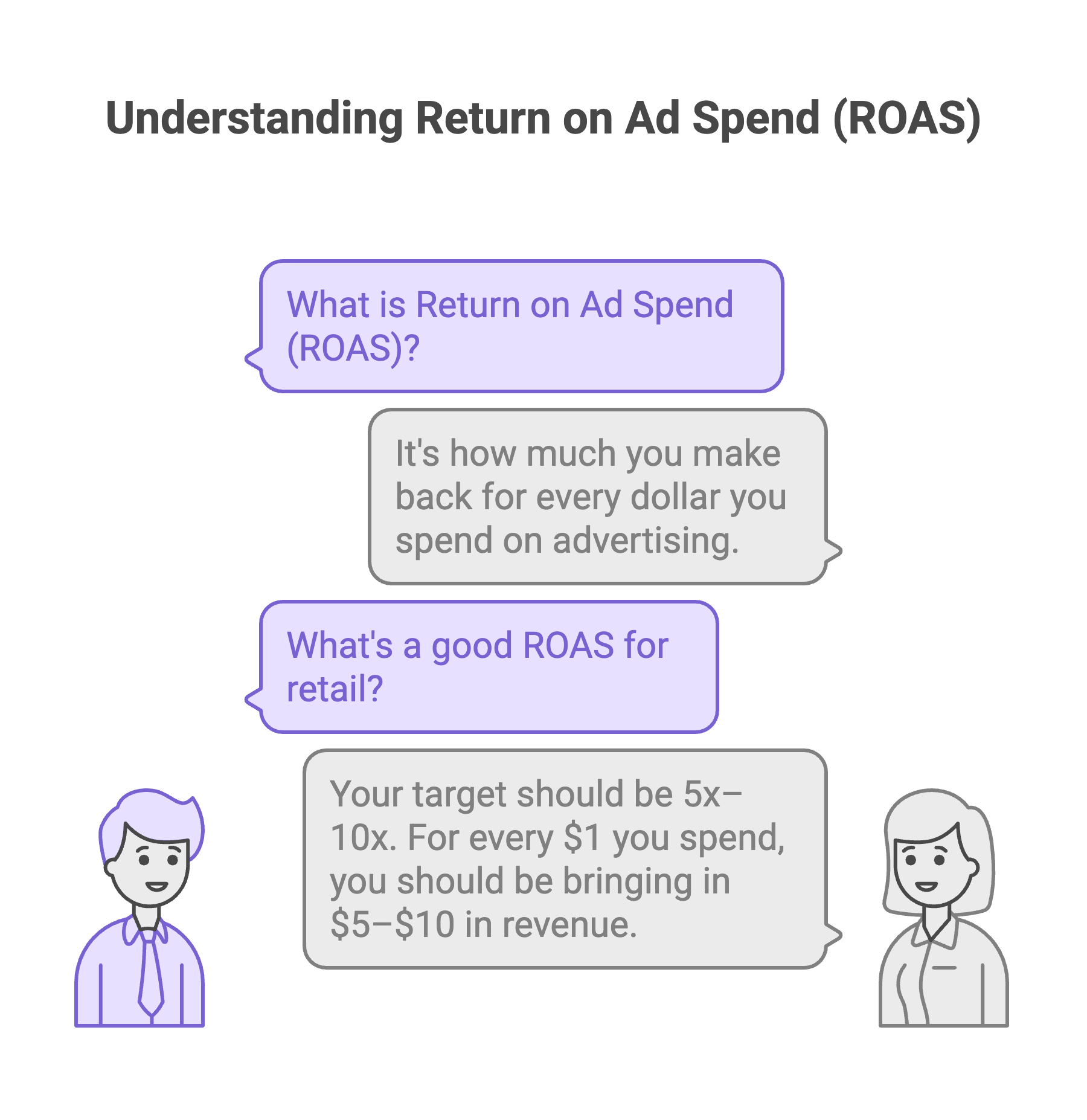Return on Ad Spend (ROAS) — how much you make back for every dollar you spend.